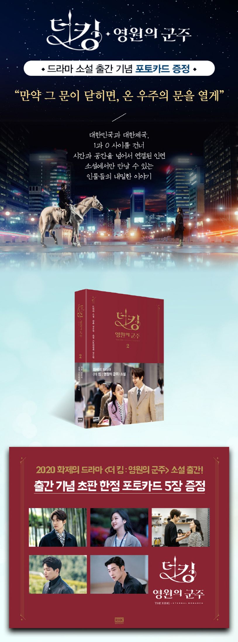세계를 넘나드는 간절한 사랑, 한치 앞도 예상할 수 없는 긴박한 스토리, 각자의 운명을 개척하기 위해 용기 있는 발걸음을 떼는 매력적인 인물들로 매 방송마다 큰 화제를 불러일으킨 드라마 〈더 킹 : 영원의 군주〉가 소설로 출간되었다.