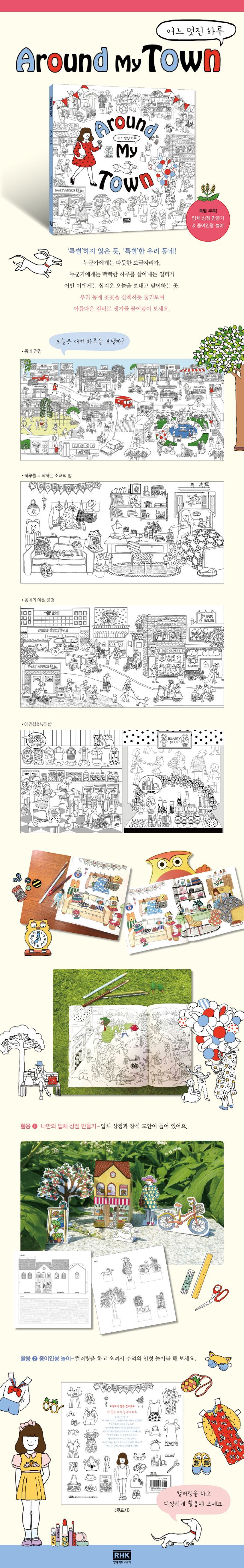 『Around My Town: 어느 멋진 하루』는 소녀가 등장합니다. 이 소녀를 쫓아 동네의 하루 속으로 들어가 보세요. 아침이 밝아오자 소녀는 바삐 움직이는 사람들 속으로 들어가요. 하루 일과를 마치고 행복한 보금자리로 서둘러 돌아가는 사람들 속에서 소녀를 찾으며 하루의 소소한 행복을 놓치지 마세요. 마치 상상 속의 동네를 꾸미듯 색을 입힐수록 나만의 ‘동네’가 완성될 거예요. 책에는 어릴 적 늘 품고 다녔던 종이 인형과 입체 상점, 장식 컷이 들어 있어 칠하고 만들어 보며, 나만의 작은 입체 마을을 꾸며 보세요.