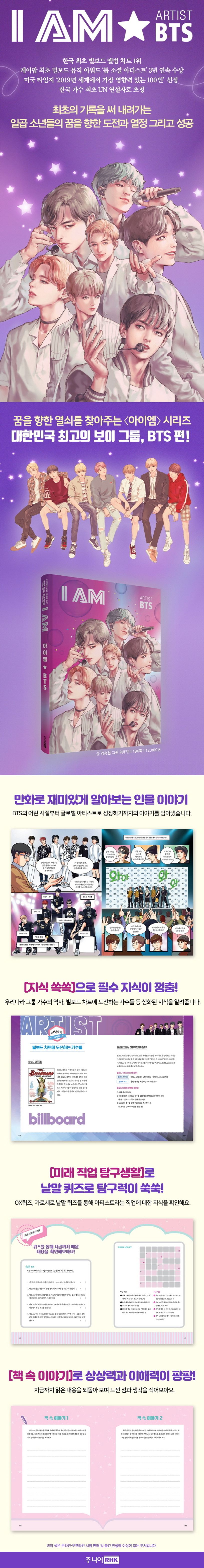 시리즈의 두 번째 책인 《BTS》 편에서는 세계를 흔든 기록의 아이콘, 7인조 보이 그룹 BTS의 어린 시절부터 글로벌 아티스트로 성공하기까지의 과정과 그들의 멈추지 않는 열정과 도전 정신 등을 만화로 재미있게 담고 있습니다. 그리고 각 장이 끝날 때마다 학습 콘텐츠를 담아 아티스트라는 직업을 깊이 있게 이해할 수 있도록 했습니다. 학습 내용과 관련된 재미있는 게임과 퀴즈도 수록되어 있어 자신이 얼마나 그 직업을 잘 이해하고 있는지 테스트해볼 수도 있습니다. 우리 아이들에게 꿈과 희망을 주는 〈아이엠〉 시리즈로 아이들 모두가 자신의 꿈을 이루기 위한 열쇠를 찾을 수 있을 것입니다.