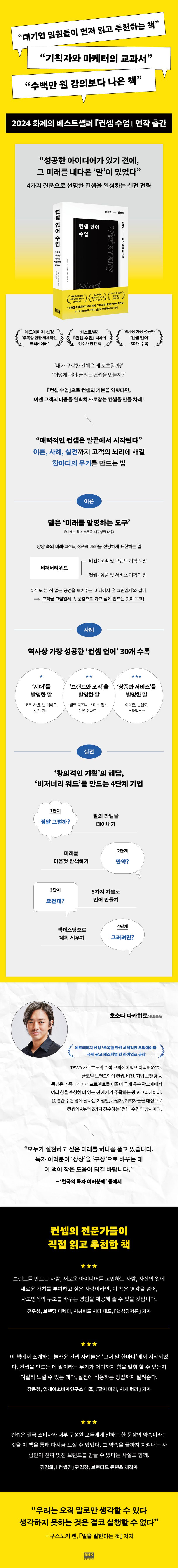 SK 등 대기업 임원들이 직원에게 추천하고, SNS와 기획자·마케터들 사이에서 입소문을 타며 2024년 경제경영 베스트셀러에 오른 『컨셉 수업』의 저자가 『컨셉 언어 수업』으로 돌아왔다. “수백만 원짜리 강의보다 낫다”, “버릴 것이 하나도 없는 명작” 등 찬사를 받으며 기획자는 물론 컨셉이 필요한 모든 이들의 교과서로 자리 잡은 전작에 이어, 『컨셉 언어 수업』은 특히 “언어”라는 도구에 주목한다.