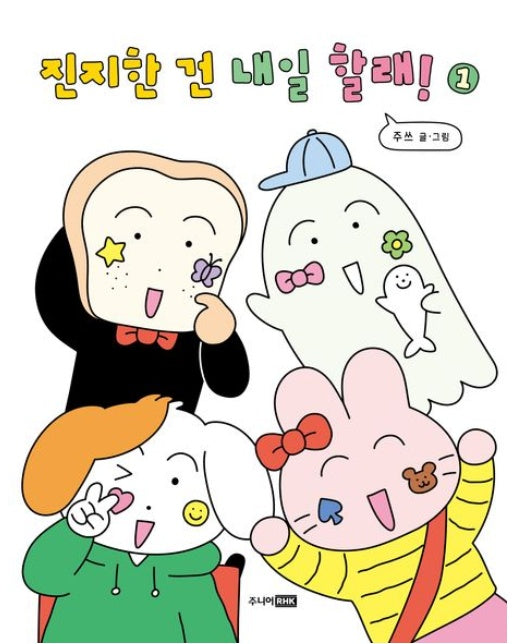 주니어RHK ‘팡 그래픽노블’ 시리즈의 첫 번째 국내 창작 그래픽노블 《진지한 건 내일 할래!》가 출간되었다. 현재 MZ세대의 사랑을 한 몸에 받으며 카카오프렌즈, 베네피트, 유튜브 등 유명 브랜드와의 협업을 통해 상업적 작업도 활발하게 펼치고 있는 일러스트레이터 주쓰의 작품으로, 2022년 8월부터 어린이 교양지 〈고래가 그랬어〉에 연재되었던 에피소드들을 한데 모았다. 또한 어디에서도 공개된 적이 없는 미연재 에피소드도 이번 단행본에서 만나볼 수 있다.