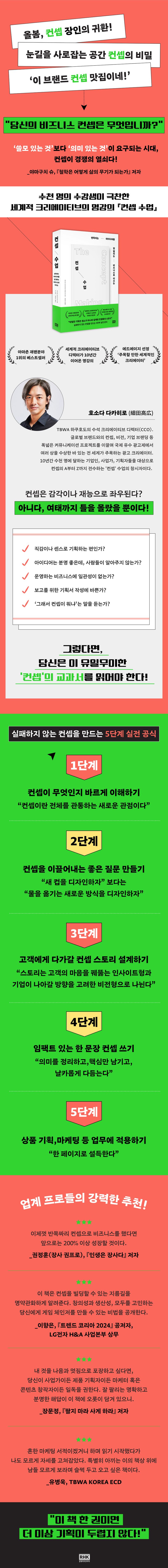 세계적인 광고 대행사 TBWA 하쿠호도의 수석 크리에이티브 디렉터, 호소다 다카히로는 10년간 기업인, 사업가, 기획자들을 대상으로 ‘컨셉’ 강의를 해왔다. 다수의 글로벌 브랜드와의 수많은 프로젝트를 이끌며 칸 라이언즈 등 국제 유수 광고제에서 여러 상을 받은 그가 터득해 온 노하우를 바탕으로, 컨셉 발상부터 한 문장으로 도출하기까지의 흐름을 실용적이고 체계적으로 가르친다. 수천 명의 극찬을 받은 그야말로 그의 노하우를 집대성한 명강의를 책으로 엮었다.