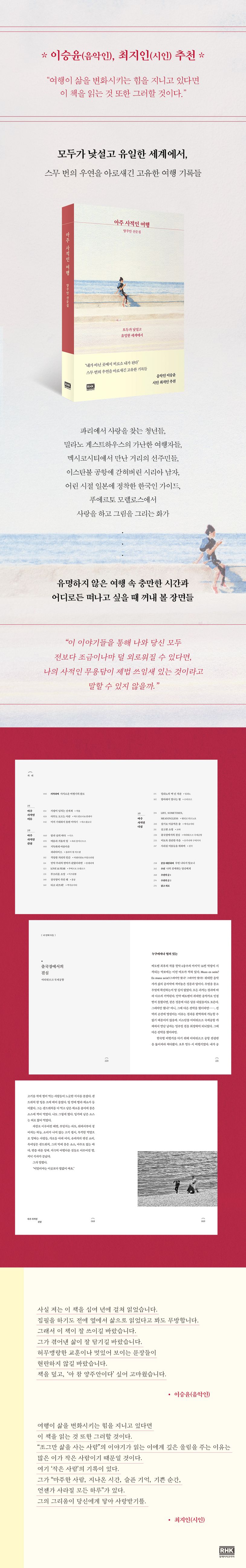 어딘가로 떠나고 싶은 욕구만큼이나 ‘나만의 고유한 여행’을 원하는 사람이 늘고, 여행을 할 때 남들 다 가는 관광지가 아닌 자기만의 경험이 중요해진 시대다. 자전거로 유럽을 횡단하던 스물넷의 여행자로 시작해 여행 에디터로서 유명 장소의 “예쁜 포장지”만을 소개하며 괴리감을 느끼던 날들, 그리고 낯선 이들과 잊지 못할 친구가 된 기억까지. 저자가 스무 곳의 지역에서 겪은 ‘아주 사적인 여행’을 함께하면 더 넓고 덜 외로운 세계를 만나게 될 것이다.