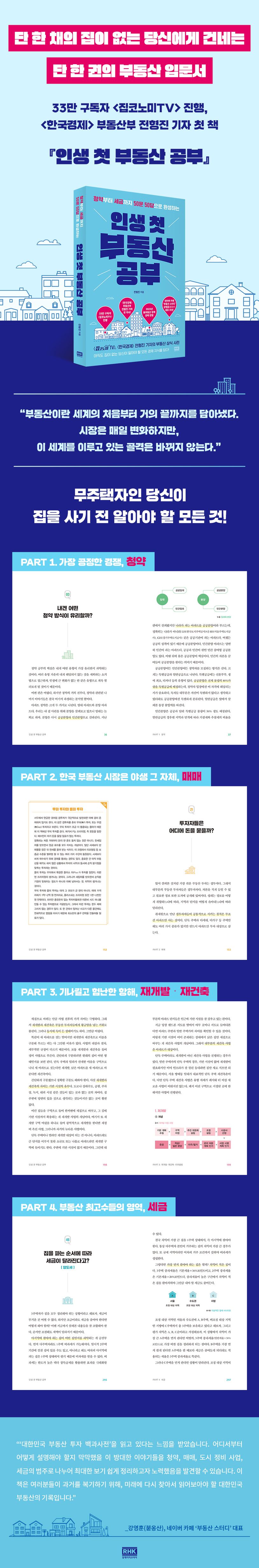‘1천만 원으로 시작해 3년 만에 자산 50억 부자가 된’ 류의 부동산 투자서들이 차고 넘치는 경제경영서 시장에, ‘실전에 앞서 이론은 필수’임을 설파하는 책 『인생 첫 부동산 공부』가 출간됐다. 최근 몇 년간 급변하는 부동산 시세, 폭등하는 금리, 휘청대는 투자자들의 마인드를 기자로서 가장 가깝게 지켜봐온 저자는 현장에서 느낀 날것 그대로의 경제 정보와 함께 부동산이라는 세계의 기본 골격을 다루는 입문서를 자신의 첫 책으로 썼다.