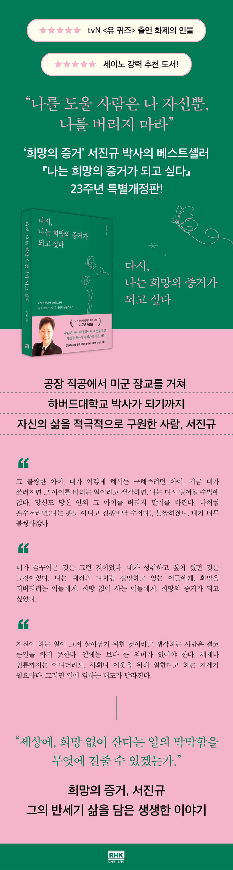 다시, 나는 희망의 증거가 되고 싶다 (가발공장에서 하버드까지, 삶을 정복한 서진규 박사의 성공스토리)