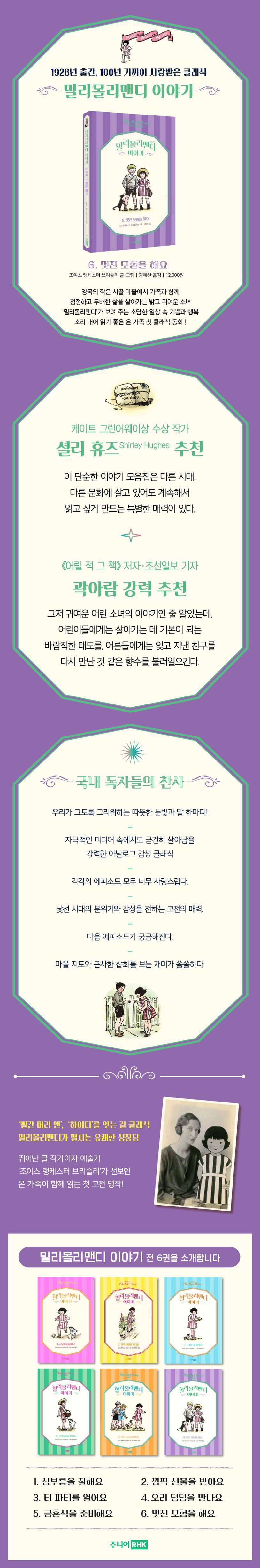 〈밀리몰리맨디 이야기〉는 모두 여섯 권으로, 《6. 멋진 모험을 해요》는 시리즈의 마지막 작품이며, 아홉 개의 에피소드가 담겨 있다.