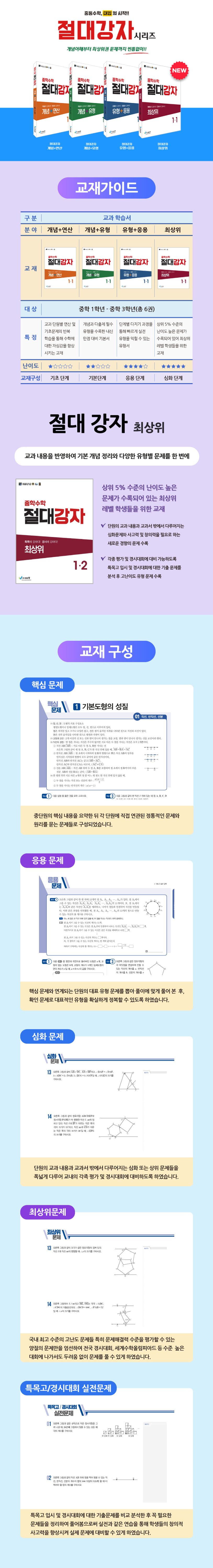 Ⅰ.기본도형1.기본도형의성질2.작도와합동Ⅱ.평면도형1.다각형2.원과부채꼴Ⅲ입체도형1.다면체와회전체2.입체도형의겉넓이와부피Ⅳ.도수분포표와그래프1.도수분포표와그래프