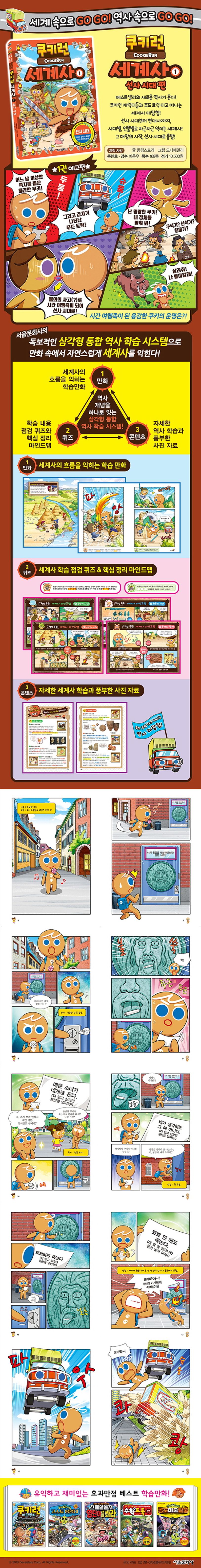 서울문화사의 독보적인 ‘삼각형 통합 역사 학습 시스템’으로 만화 속에서 자연스럽게 세계사를 익힐 수 있습니다. 시간 여행을 떠난 쿠키런 캐릭터와 함께 저절로 세계사의 흐름을 익히는 학습 만화, 매 에피소드마다 간단하게 복습하는 학습 점검 상식과 퀴즈, 그리고 핵심 요약을 네 컷 만화로 정리한 핵심 정리 마인드맵, 자세한 세계사 학습 내용과 풍부한 사진 자료가 가득한 콘텐츠까지, 쿠키런 캐릭터가 떠나는 시간 여행에 흠뻑 빠져 있다 보면 선사 시대부터 현대까지 세계사의 흐름이 머릿속에 콕콕! 정리됩니다.