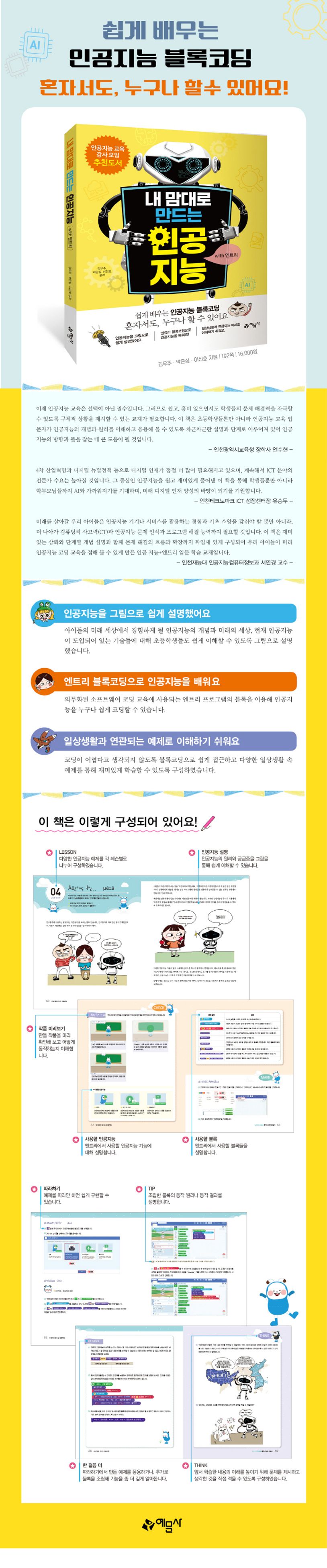이 책은 인공지능의 기초적인 원리와 구조를 그림을 통해 알아보고, 어떤 방식으로 활용할 수 있을지 직접 소프트웨어를 만들면서 이해를 높일 거예요. 더불어 다양한 곳에서 인공지능이 어떻게 사용되고 있는지 뿐만 아니라 사용하면 좋을지에 대한 고민도 함께 할 수 있도록 구성되어 있습니다.