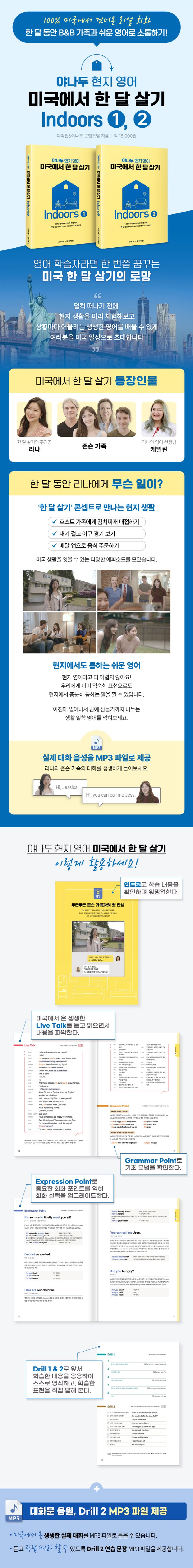 수많은 영어 표현을 공부했지만,막상 영어로 말할 기회가 생겼을 때 입이 쉽게 떨어지지 않아서 난감했던 적 있으신가요?외국에 가서도 당당하게 말할 수 있으려면, 현지에 가지 않고는 알기 어려운 상황들을 미리 체험해보고 이런 상황마다 어울리는 생생한 영어를 학습해야 합니다.미국 현지에서 쓰는 리얼한 영어를 배우러 이 책과 함께 미국의 일상으로 떠나볼까요?