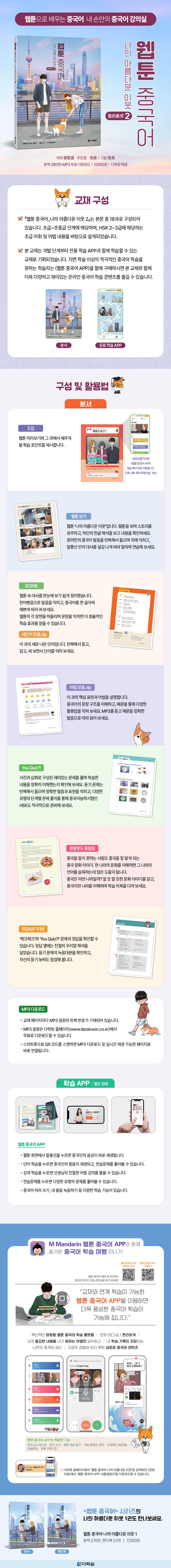 본 교재는 개발 단계부터 전용 학습 APP과 함께 학습할 수 있는 교재로 기획되었습니다. 지면 학습 이상의 적극적인 중국어 학습을 원하는 학습자는 〈웹툰 중국어 APP〉을 함께 구매하시면 본 교재와 함께 더욱 다양하고 재미있는 온라인 중국어 학습 콘텐츠를 즐길 수 있습니다.