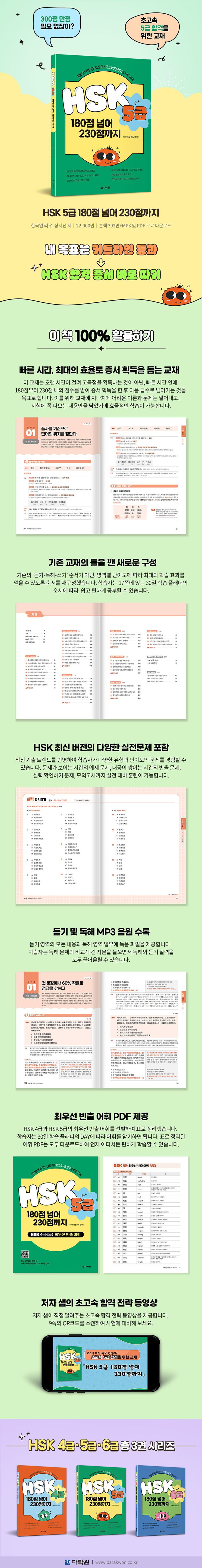 이 교재는 오랜 시간이 걸려 고득점을 획득하는 것이 아닌, 빠른 시간 안에 180점부터 230점 내의 점수를 받아 증서 획득을 한 후 다음 급수로 넘어가는 것을 목표로 합니다. 이를 위해 교재에 지나치게 어려운 이론과 문제는 덜어내고, 시험에 꼭 나오는 내용만을 담았기에 효율적인 학습이 가능합니다.