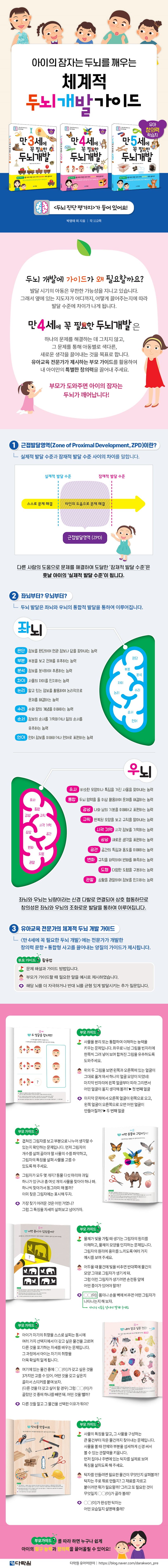 〈만 3/4/5세에 꼭 필요한 두뇌 개발〉 시리즈는 시기별 아이의 잠재적 발달 수준을 끌어올리는 것을 목표로 개발된 유아 창의력 학습지입니다. 유아교육 전문가의 오랜 연구를 토대로 문항을 개발하고, 이를 공학적 사고로 연결하는 동시에 초등학생 시기에 필요한 능력으로 연결될 수 있도록 구성하였습니다.
