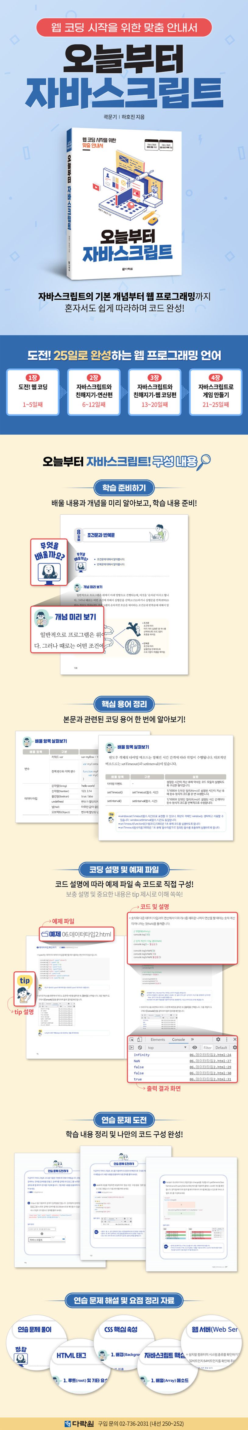 25일 동안 코딩을 끝낼 수 있도록 필요한 주제로만 나눠서 내용을 구성하였고, 1일째부터 25일째까지 열심히 따라 한다면 혼자서도 충분히 코딩을 배울 수 있습니다. 자세하고 알기 쉬운 설명으로 예제 파일의 코드도 문제없이 해결할 수 있습니다.