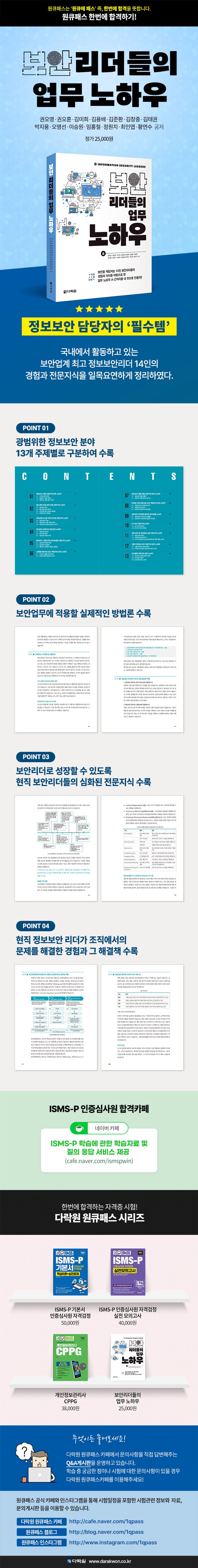ㆍ 보안리더로 성장할 수 있는 심화된 현직 보안리더들의 전문적인 지식 수록