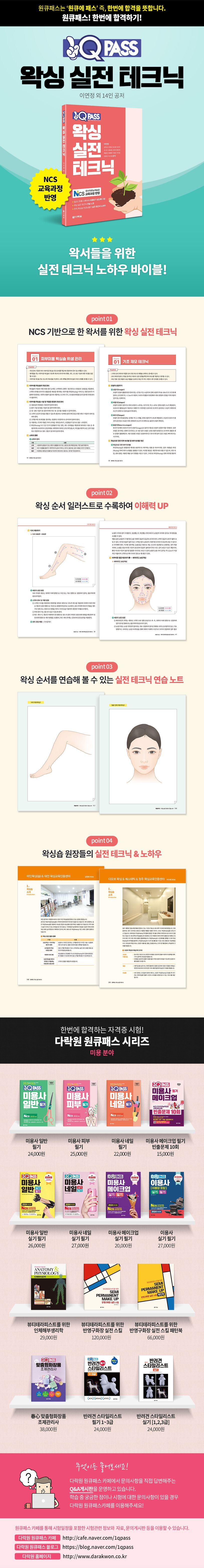 뷰티산업은 헤어, 피부, 네일, 메이크업 미용을 시작으로 왁싱 전문숍, 속눈썹 전문숍, 바버숍 등 그 세분화가 다양화되어 가고 있다. 그중 미용 왁싱숍은 여성뿐만 아니라 스스로 외모를 가꾸는 남성들까지 남녀 모두에게 관심을 끌고 있다. 이에 현재 다양한 형태의 왁싱숍이 생겨나고 있으며, 제모(왁싱) 분야가 제모(왁싱) 서비스를 통해 부가적인 수입을 창출할 수 있는 미용 분야로 전망되고 있다. 이를 계기로 1인숍, 숍인숍, 프렌차이즈숍, 협의체(협동조합+체인숍) 등의 다양한 형태로 생겨나고 있지만, 왁싱 서비스 품질은 평준화되어 있지 않다. 따라서 이번에 출간하는 〈원큐패스 왁싱 실전 테크닉〉은 국가직무능력표준(NCS ; National