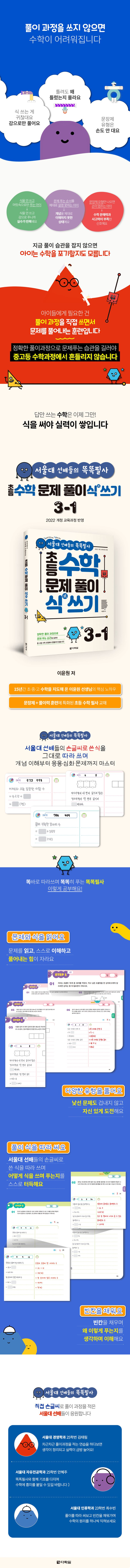 수학을 감으로 풀고 있지 않나요? 식을 쓰지 않고 머릿속으로만 계산해서 수학 문제를 풀다 보면 계산 실수를 계속하고, 어려운 문제에는 쉽게 접근하지 못하게 됩니다. 그러다 보면 정확한 풀이는 모른 채 어영부영 넘어가게 됩니다. 초등학교 때부터 올바른 식을 쓰며 문제를 푸는 습관을 길러야 중·고등 수학 과정에서도 자신 있게 수학 문제를 풀 수 있습니다.