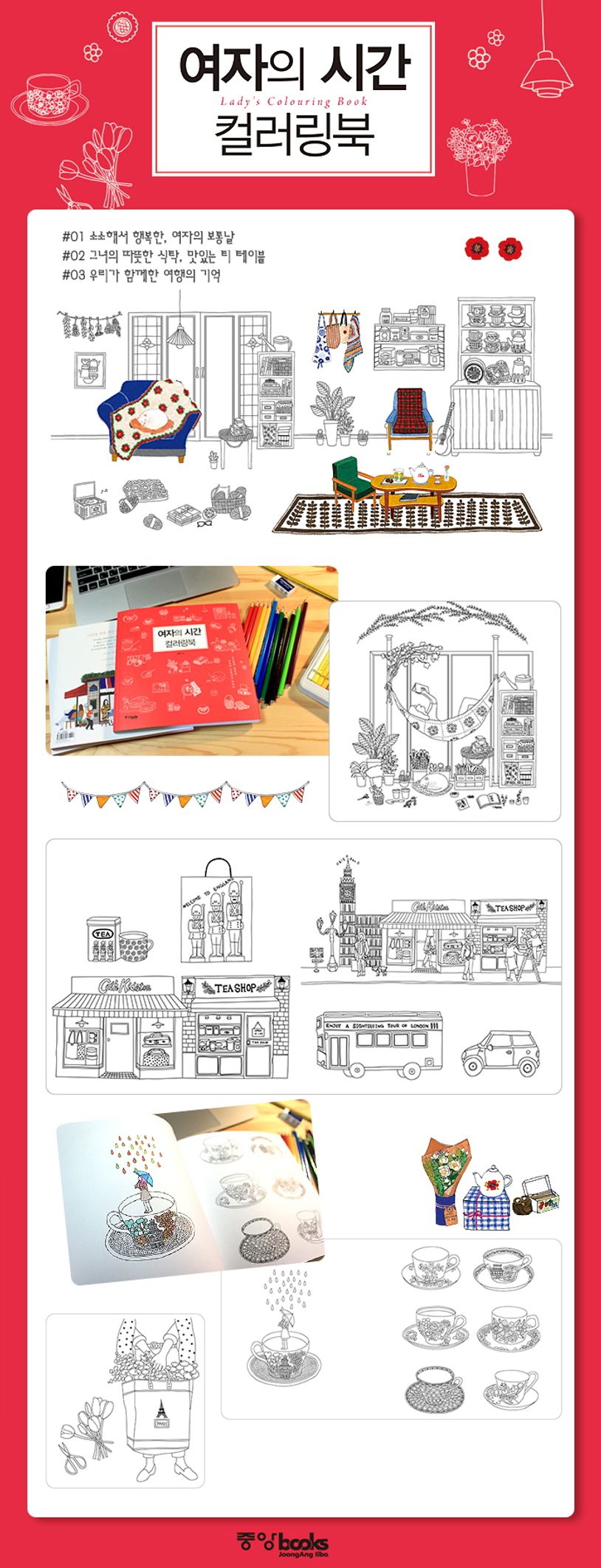 책에는 ‘소소해서 행복한, 여자의 보통날’, ‘그녀의 따뜻한 식탁, 맛있는 티 테이블’, ‘우리가 함께한 여행의 기억’이라는 테마에 따라 여자들이 좋아할 만한 감성적인 그림들이 가득하다. 다양한 홍차 이야기로 주목받았던 [여자의 시간] 속 일러스트를 밑그림으로 재구성하였으며, 봄 냄새 물씬 나는 꽃다발, 꽃가게, 파리의 카페와 작업실, 아기자기한 패턴 등이 추가로 실렸다.