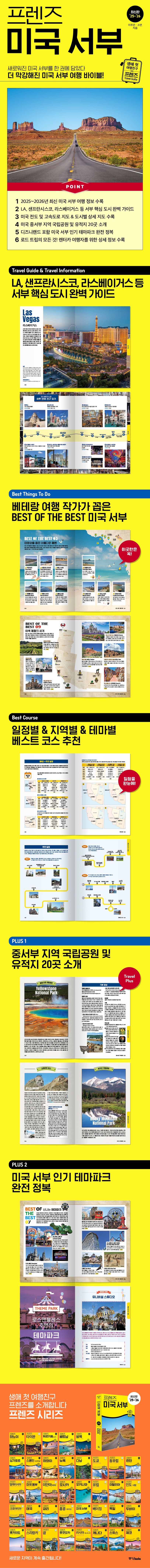〈프렌즈 미국 서부 25~26〉은 현지에 거주하는 저자가 직접 발로 뛰며 취재한 최신 정보와 생생한 로컬 감각을 바탕으로 시시각각 변하는 현지 사정을 세심하게 반영했다. 이 책과 함께라면, 그랜드캐니언의 압도적인 협곡, 영화 속에서 보던 할리우드 사인, 태평양의 물결이 반짝이는 샌타모니카 비치, 최고의 미식 경험을 선사하는 스타 셰프들의 레스토랑, 감성을 자극하는 해안 도로 드라이브, 그리고 언덕 위 케이블카가 빚어내는 샌프란시스코의 클래식한 풍경까지, 미국 서부의 다채로운 매력을 한층 깊이 있게 누릴 수 있다.