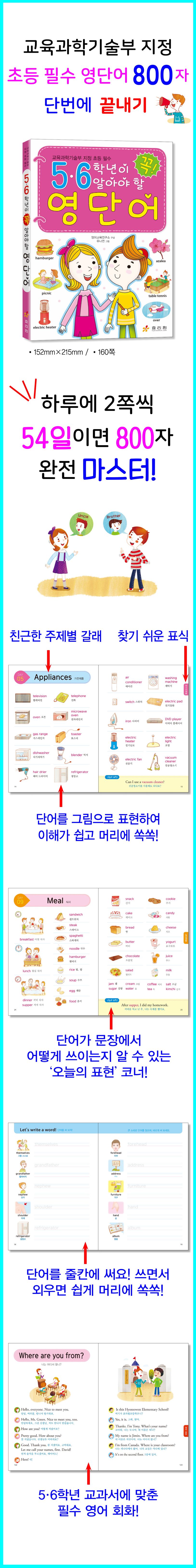 5ㆍ6학년 영어 교과서의 단어는 물론, 교육과학기술부 지정 초등 필수 영단어 800자까지 익혀요!