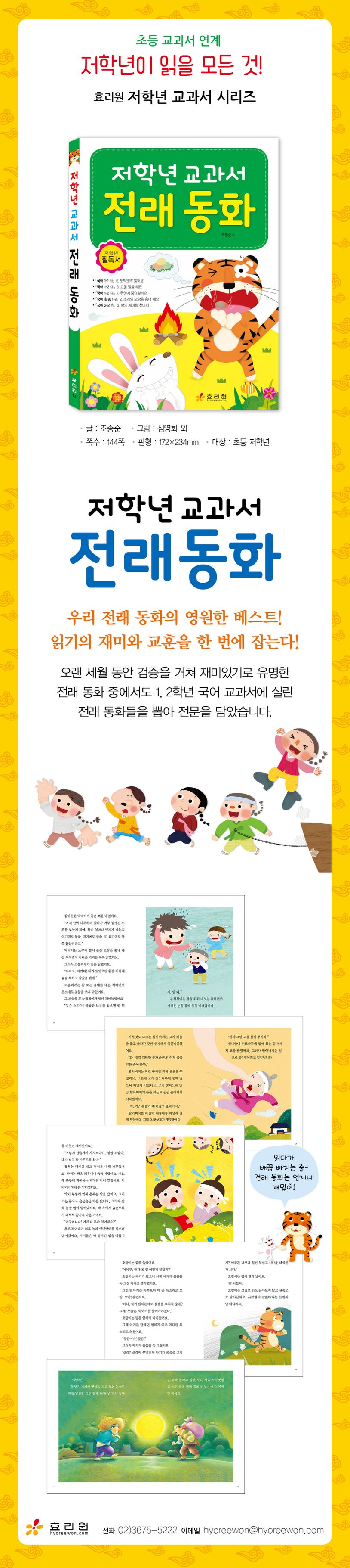 「저학년 교과서 전래 동화」는, 오랜 세월 동안 검증을 거쳐 재미있기로 유명한 전래 동화 중에서도 1, 2학년 국어 교과서에 실린 전래 동화들을 뽑아 전문을 담았습니다. 따라서 교과서에서 미처 다 읽지 못한 전래 동화는 전문을 읽으며 결말의 궁금증을 해결할 수 있습니다. 동화를 다 읽은 후에는 이야기의 결말을 바꿔 나만의 현대적인 이야기로 재탄생시키거나, 역할극으로 꾸며서 연극놀이를 하면 상상력과 창의력을 키우는 데 큰 도움이 될 것입니다.