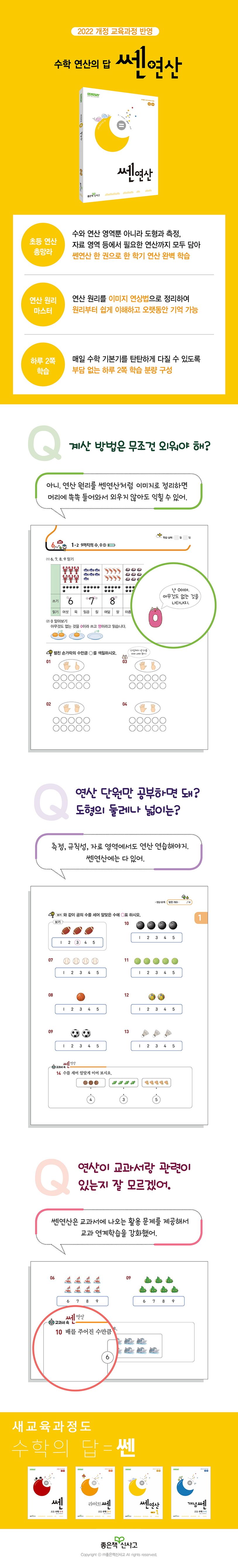 학습 중인 연산의 교과 단원명을 명시하여 학습 편의성을 도모하고, 익힘책 수준의 문장제 문제를 ‘교과서 속 쎈연산’ 코너로 제공하여 이를 통해 문제해결력을 키울 수 있도록 하였습니다."