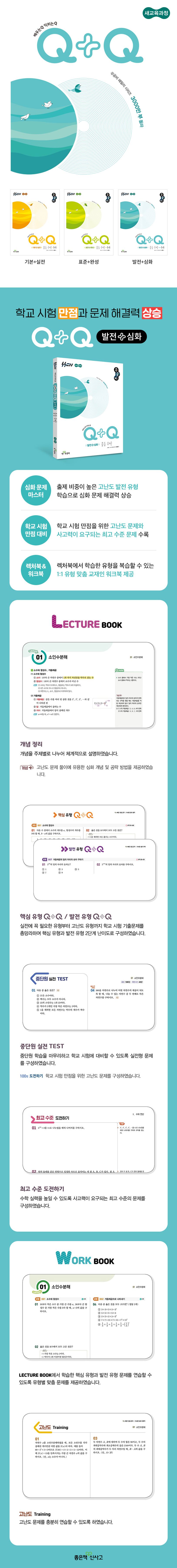 〈우공비Q+Q 발전심화〉는 개념별 핵심 유형과 출제 비중이 높은 고난도 발전 유형으로 학교 시험을 완벽하게 대비할 수 있도록 하였습니다. "