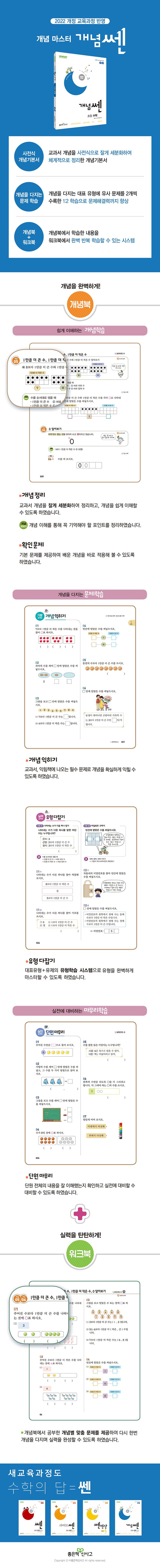 1. 개념학습: 교과서 개념을 사전식으로 잘게 세분화하여 정리하고 개념을 쉽게 이해할 수 있도록 하였습니다. 또 기본 문제를 제공하여 배운 개념을 바로 적용해 볼 수 있도록 하였습니다.