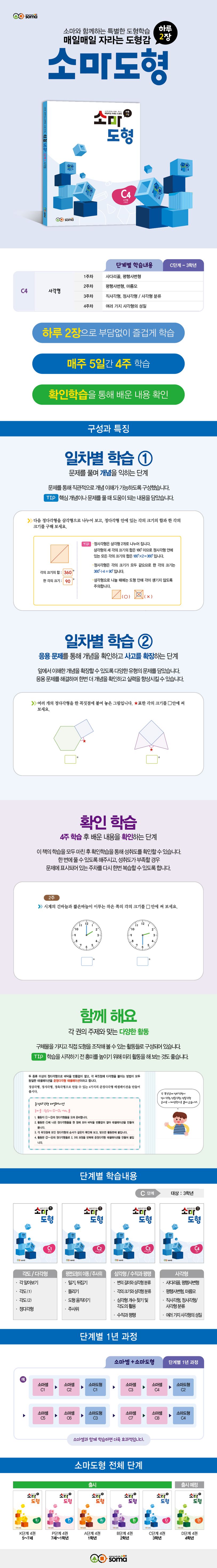 소마도형은 5세부터 초등 5학년까지의 학생들을 대상으로 초등 전과정의 도형 파트를 다루는 도형 학습서입니다.