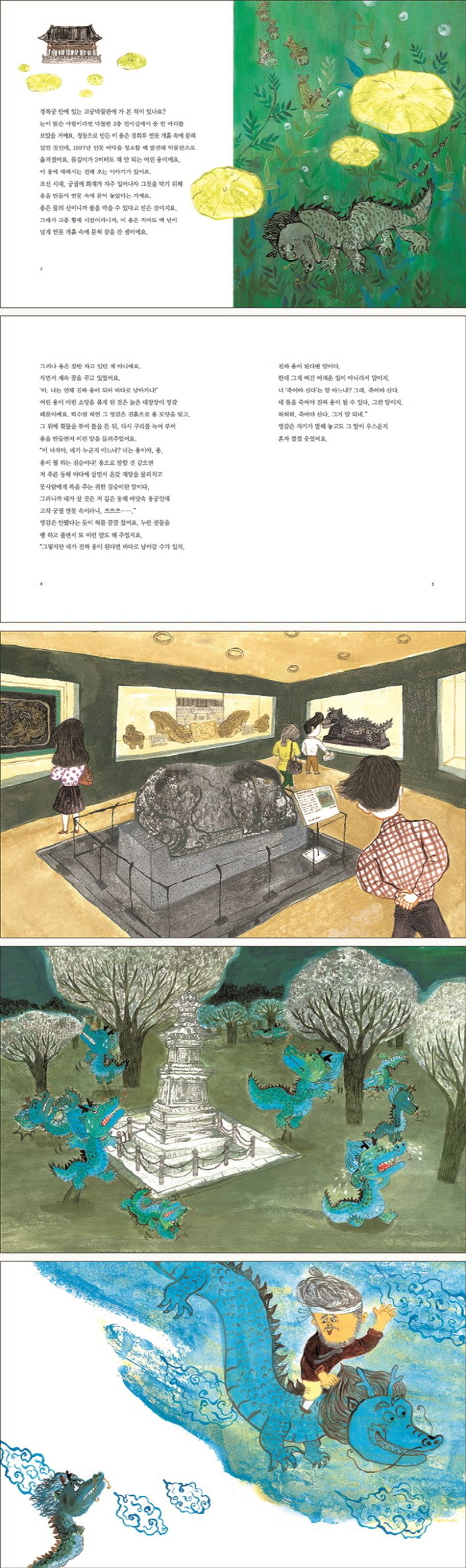 『경복궁 어린 용』은 경복궁 고궁박물관에 있는 청동 용을 소재로 한 스토리텔링 그림동화입니다. 동화작가 조대현 선생님은 어느 날, 고궁박물관 전시실에 있는 청동 용을 보고 ‘하늘을 자유롭게 날아야 할 용이 왜 이 안에 있을까?’ 생각했습니다. 그러고는 진짜 용이 되기 위해 애쓰는 어린 용을 주인공으로 이야기를 쓰게 되었지요. 동화는 곧 그림작가 배종숙 선생님의 손에서 천진하고 귀여운 어린 용과 경복궁의 훌륭한 모습으로 구체화되었고, 그림동화책으로 탄생할 수 있었습니다.