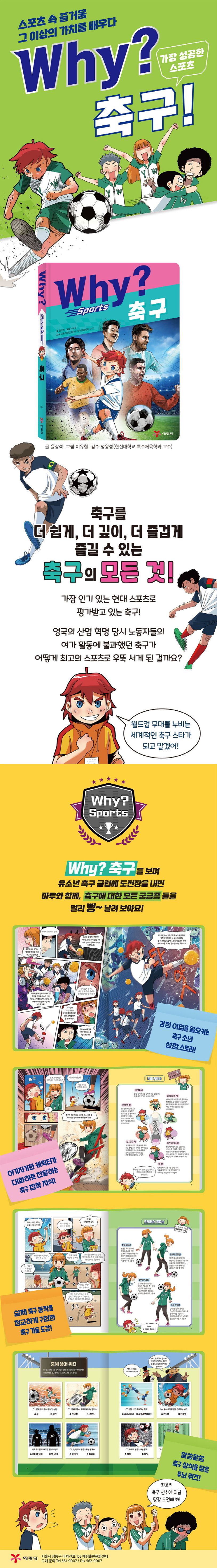 〈WHY? 스포츠〉의 두 번째 책은 가장 인기 있는 종목이자, 초등학생 희망 진로 TOP 5에 빠지지 않고 뽑히는 축구에 관한 모든 것을 담았다. 축구의 탄생 비화, 발전사, 성공 비결 등에 대해 알아보고, 주인공 마루의 성장 일기를 통해 축구 선수가 지녀야 할 핵심 역량과 자세까지 배워 보자.