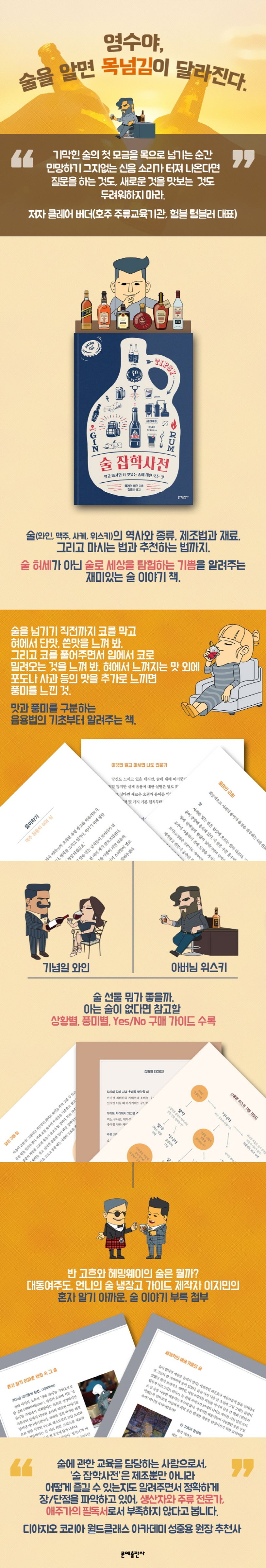 술의 제조부터 마실 때까지의 과정을 그림으로 표현해 독자의 이해를 돕고 있으며, 한국어판에는 ‘대동여주도’, ‘언니의 술 냉장고 가이드’ 등 술에 대한 콘텐츠를 SNS에 소개하는 이지민 씨의 ‘혼자 알기 아까운 영화 속 그 술’, ‘세계적인 예술가들의 술’과 같은 원고를 추가해 술에 관한 흥미롭고 풍부한 이야기를 전달한다.