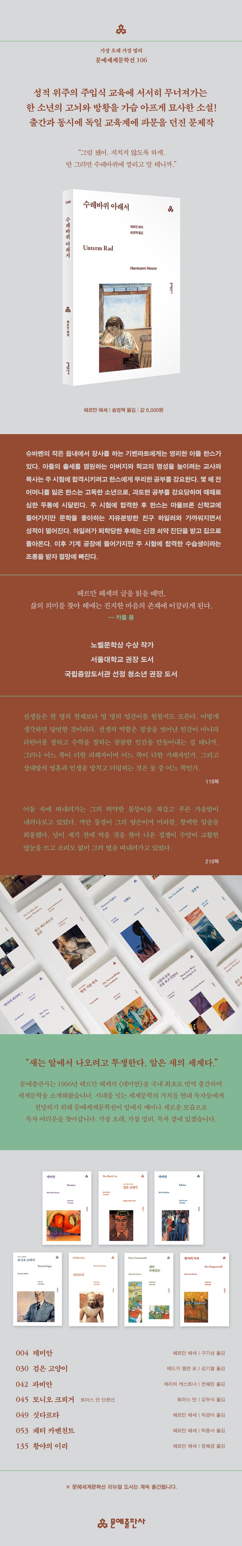 헤세의 젊은 시절 체험이 고스란히 녹아 있는 작품으로 헤세의 소설 중 가장 많이 읽혔다. 비인간적인 교육 제도의 희생양이 된 한 소년의 삶을 가슴 아프게 묘사하여 당시 독일 교육계에 큰 파문을 던졌다. 슈바벤의 작은 읍내에서 장사를 하는 기벤라트에게는 영리한 아들 한스가 있다. 아들의 출세를 염원하는 아버지와 학교의 명성을 높이려는 교사와 목사는 주 시험에 합격시키려고 한스에게 무리한 공부를 강요한다. 몇 해 전 어머니를 잃은 한스는 고독한 소년으로, 과도한 공부를 강요당하며 때때로 심한 두통에 시달린다. 주 시험에 합격한 한스는 마울브론 신학교에 들어가지만 문학을 좋아하는 자유분방한 친구 하일러와 가까워지면서 성적이 떨어진다. 하일러가 퇴학당한 후에는 공부를 따라가지 못해 신경 쇠약 진단을 받고 집으로 돌아온다. 어렴풋한 첫사랑을 경험한 후에 기계 공장에 들어가지만 주 시험에 합격한 수습생이라는 조롱을 받자 절망에 빠진다.
