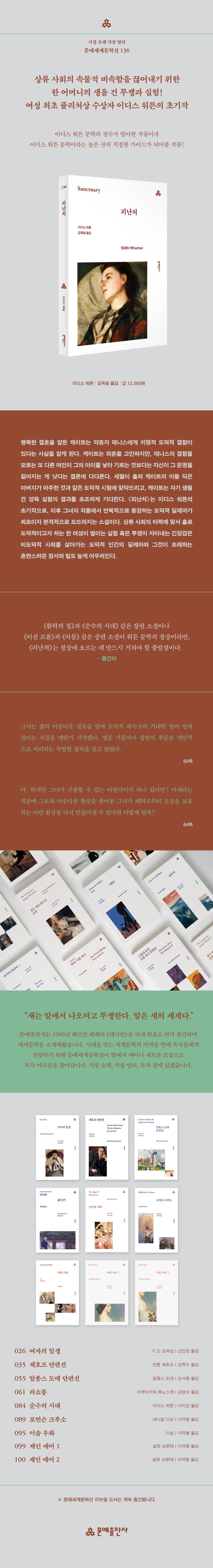 이처럼《피난처》는추후이디스워튼의여러대표작에서반복될도덕적딜레마를비롯한주요한테마를비롯해지금까지도논쟁거리가되는여러물음에대한논쟁을밀도높은문학적문장에응축해풀어낸작품이다.무엇보다,한개인의결연한의지가관습화된부도덕한통념을거스를수있을것인지를묻는다는점에서우리를속박하는사회와그를돌파하는개인의이야기,즉가장보편적인문학적테마를취한작품이기도하다.미국을대표하는작가이자문학사에서손꼽히는여성작가가오래전에던진질문이아직도이토록날카롭고형형하다는점이놀랍다.모쪼록이디스워튼의알려지지않은작품인《피난처》를통해,국내독자에게워튼문학세계의확장과더불어그녀가작품속에담은메시지를다시한번곱씹는계기가되기를바란다.