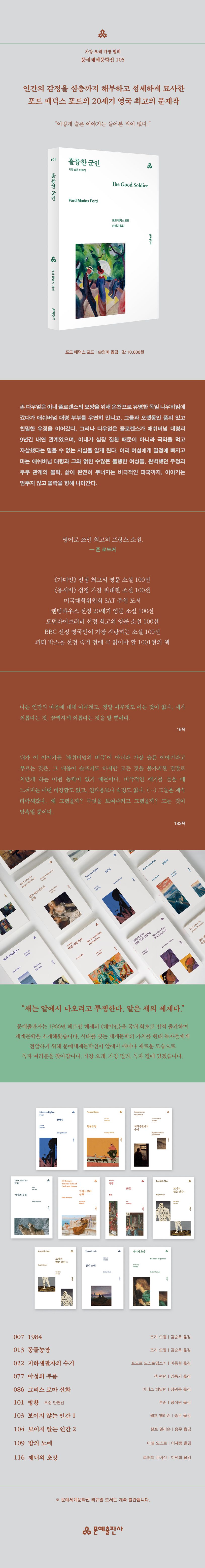 여기에 포드는 그 특유의 섬세하고 아름다운 회화적 문체로 사랑하고 파멸하는 인물들의 모습을 극적이고도 아름답게 그려낸다. 그 덕분에 독자는 한순간의 치정극이 아닌, 문학, 미술, 역사가 어우러진 격조 높은 비극을 감상하는 듯한 느낌을 받을 수 있다. 《훌륭한 군인》이 BBC와 《가디언》을 비롯해 영국의 각종 매체에서 필독서로 꼽히는 이유도 거기에 있다. 독자는 이 소설에서 단편적인 로맨스가 아닌, 20세기 초 영국이라는 한 시대와 그 속에서 살아가는 인물들의 삶 자체를 만나볼 수 있을 것이다.