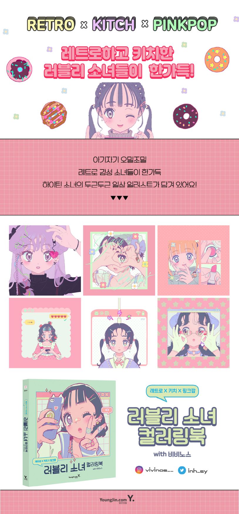 레트로X키치X핑크팝: 러블리 소녀 컬러링북 with 비비노스