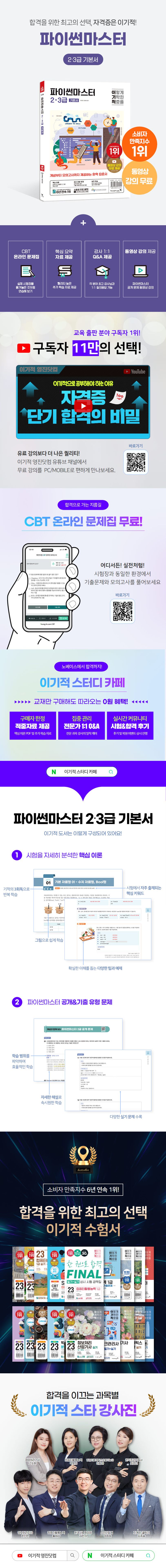 이기적 파이썬마스터 2ㆍ3급 기본서 (전문가가 집필한 2, 3급 핵심이론 | 공개문제 2회+기출 유형 문제 8회 제공 / CBT 온라인 문제집)