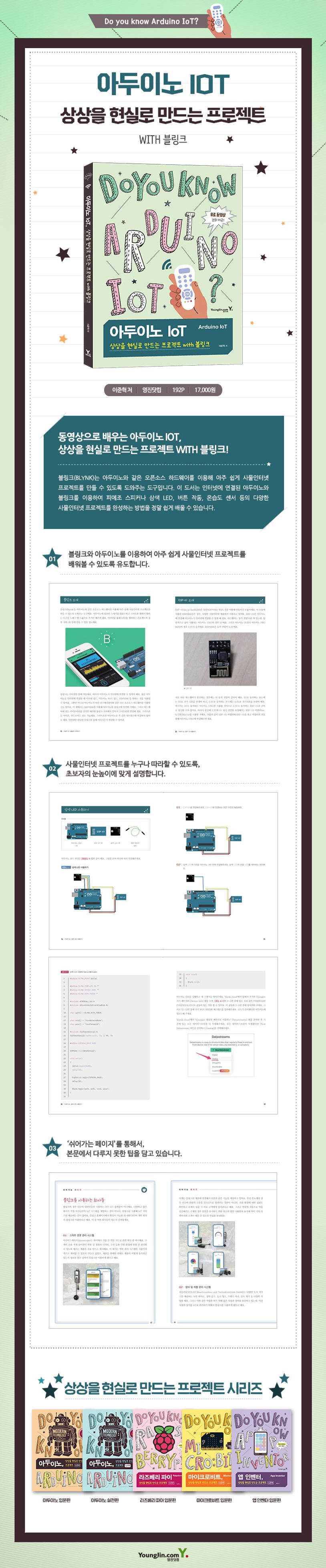 이 책은 ‘아두이노, 상상을 현실로 만드는 프로젝트 입문편/실전편’에서 자세히 다루지 못했던 ‘사물인터넷’이란 주제에 집중했으며, 관심만 있다면 누구나 쉽게 만들어보고 활용할 수 있는 다양한 프로젝트를 소개하고 있습니다.