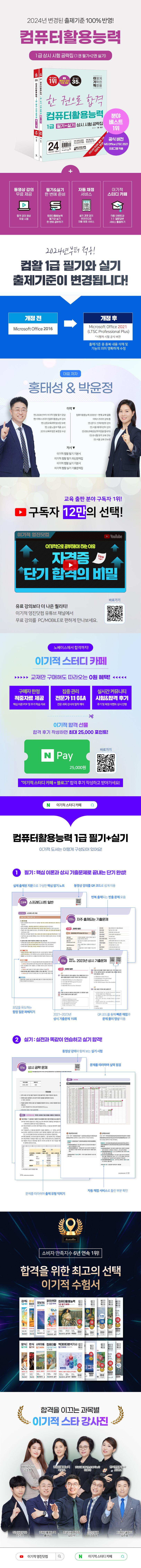 2024 이기적 컴퓨터활용능력 1급 필기+실기 상시 시험 공략집 (2024년 출제기준 반영+동영상 강의 무료 제공+자동 채점 서비스 | 전 2권)