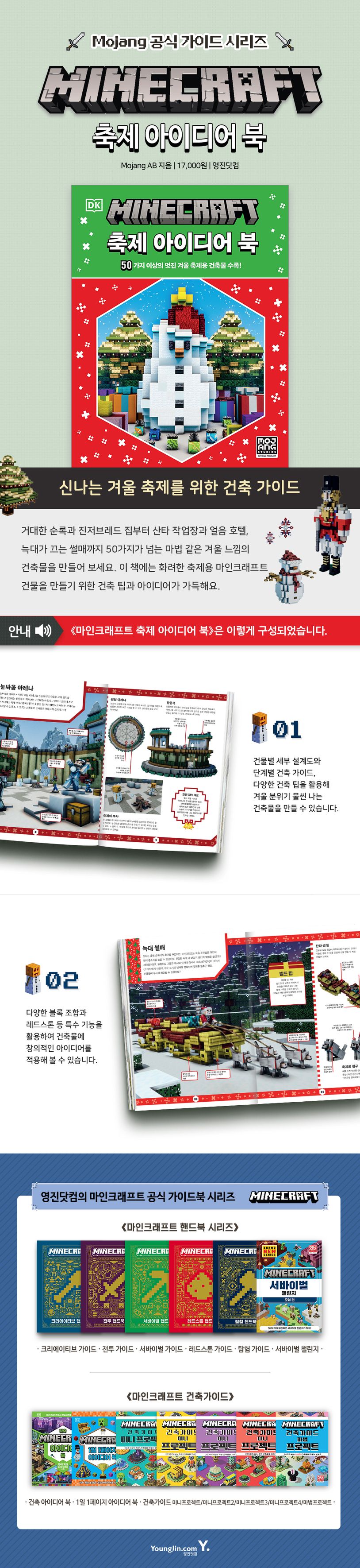 거대한 순록과 진저브레드 집부터 산타 작업장과 얼음 호텔, 늑대가 끄는 썰매까지 50가지가 넘는 겨울 테마의 마인크래프트 건축물을 만들어 보세요. 이 책에는 각 건물별 세부 설계도와 단계별 건축 가이드, 전문가들의 노하우 등 멋진 건축물을 만들기 위한 다양한 방법들이 담겨 있습니다. 이 책에 나오는 건축물에 다양한 블록과 색을 조합하고, 레드스톤과 특수 기능 블록을 활용하여 창의적인 아이디어를 적용할 수도 있죠. 번뜩이는 아이디어와 기발한 상상력을 발휘하여 겨울 분위기 물씬 나는 멋지고 화려한 건축물을 만들어 보세요.