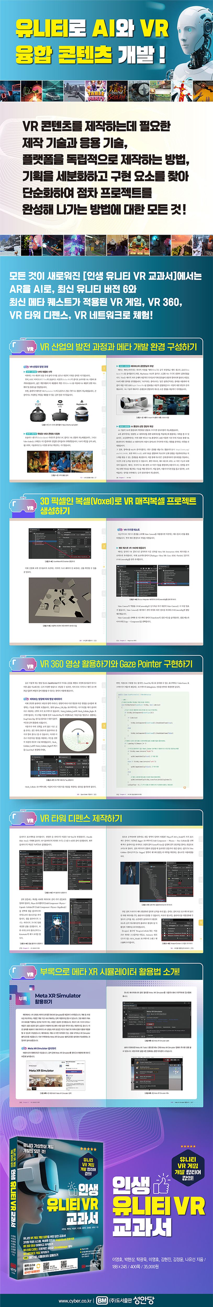 『인생 유니티 VR/AR 교과서』의 후속으로 기획된 이번 책은 AR 파트를 AI로 핵심 이슈가 흡수될 것으로 전망하여 과감히 걷어내고 VR 중심으로 내용을 재편했으며, 최근 CES 2025를 통해 주목받고 있는 AI 융합 기술과 스마트 글래스, 메타버스, 뇌-컴퓨터 인터페이스(BCI) 등 최신 흐름을 반영했다.