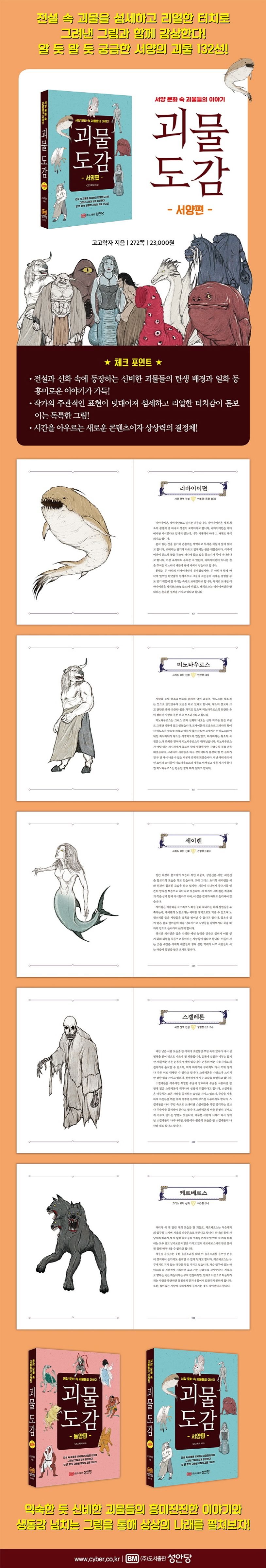 이 책은 서양의 괴물을 일러스트와 함께 알기 쉽게 소개하고, 평소 익숙했던 괴물들은 물론 신비한 괴물들까지 총망라하여 탄생 배경과 일화 등 흥미로운 이야기로 가득하다. 예부터 전해지는 이야기를 토대로 작가의 주관적인 표현이 덧대어져 섬세하고 리얼한 터치감이 돋보이는 괴물 그림이 이 책을 즐기는 또 하나의 볼거리라고 할 수 있다. 누군가에겐 무섭기만 한 괴물일지라도 당대의 사람들이 만들었던 상상력의 결정체라는 점을 생각하며 접한다면 시간을 아우르는 새로운 콘텐츠로 다가올 것이다. 또한 이 책을 통해서 조금이나마 조상들의 아름다운 상상력을 엿보고 신비하고 흥미로운 이야기를 가진 다양한 요괴들에 관심을 가질 수 있는 계기가 되기를 바란다.