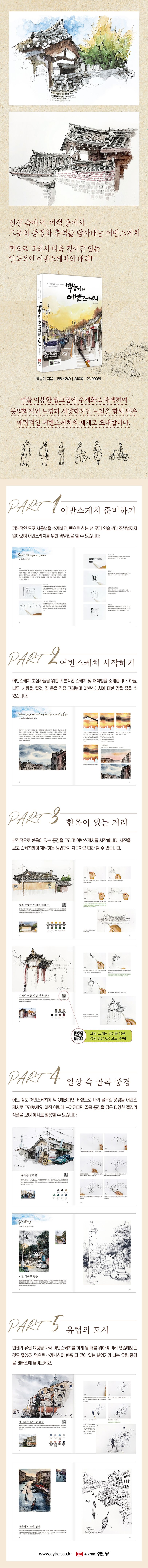 어반스케치를 할 때는 주로 펜을 이용하기도 하지만, 먹으로 밑그림을 그리면 그림에 깊이감을 한결 더할 수 있다. 이 책은 먹과 나무젓가락으로 그린 그림에 수채화로 채색하면서 동양화적인 느낌과 서양화적인 느낌을 함께 담을 수 있는 멋스러운 어반스케치를 담았다. 한국적인 골목길과 한옥 풍경을 그릴 때는 무엇에 신경을 써야 하는지, 나무젓가락과 먹으로 어떻게 스케치를 해나가는지, 수채화 물감은 어반스케치에서 어떻게 사용해야 하는지 등, 어반스케치를 처음 시작하는 분들부터 중급자 이상인 분들까지 누구나 두루 보면서 필요할 때마다 꺼내 볼 수 있게 구성했다. 또한 모든 작품의 작업 과정을 동영상으로 촬영하여 QR코드로 확인하며 함께 그림을 그릴 수 있도록 구성했다.