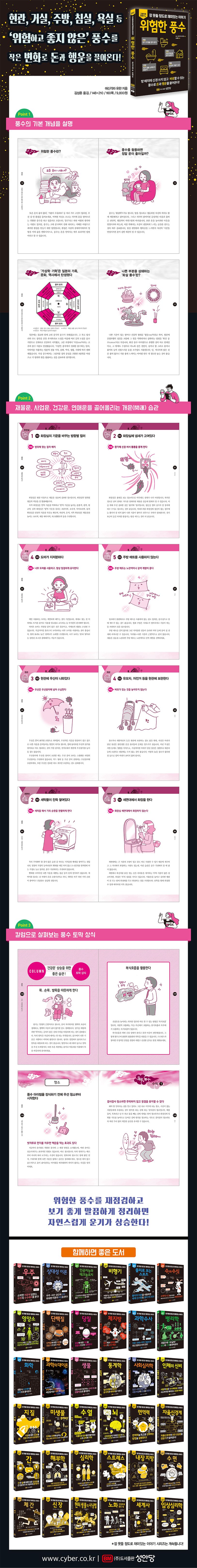 이 책에서는 일본에서 독자적으로 발전한 가상학(家相學) 이론을 도입해, 평면도나 전문적인 지식이 없어도 현재 살고 있는 집에 바로 적용할 수 있는 풍수 비법을 제안한다. 현관, 거실, 주방, 침실, 욕실 등 각 장소마다 ‘위험하고 좋지 않은’ 풍수를 친절하게 예시로 소개하고, 작은 변화를 주어 운을 끌어올릴 수 있는 개운(開運) 습관들을 재물운, 사업운, 건강운, 연애운으로 나누어 구체적으로 알려주고, 일상 속에서 쉽게 실천할 수 있도록 구성하였다.