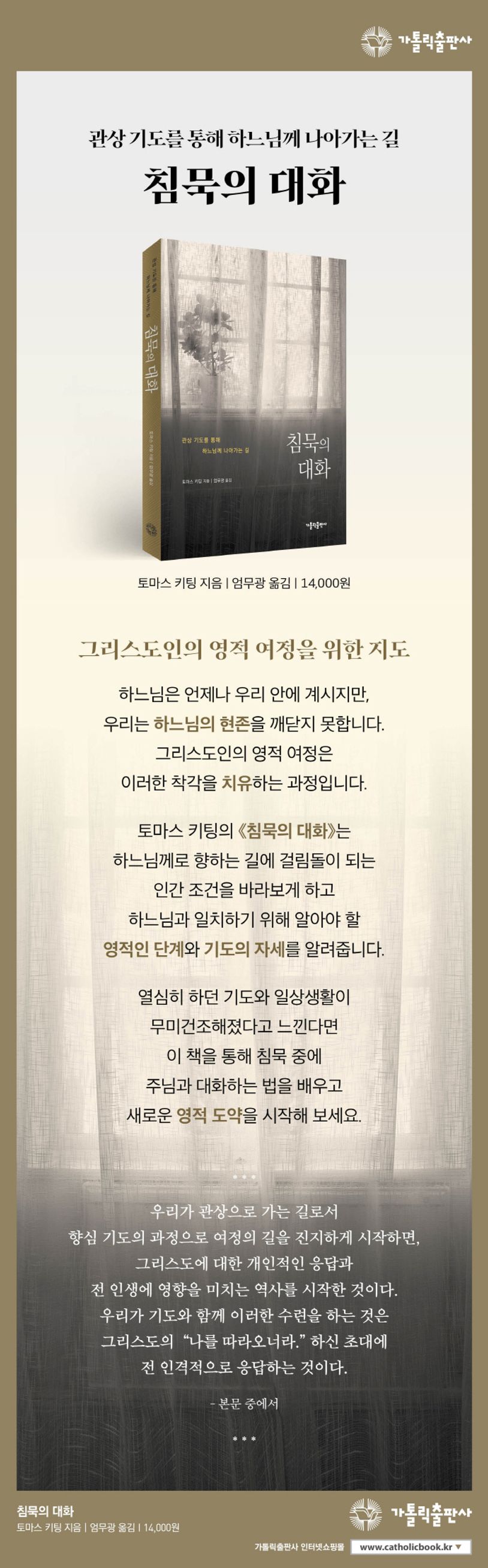 이번에 가톨릭출판사에서는 그가 남긴 주요 저서 중, 그리스도인의 관상 여정을 이해하는 데 필요한 관념적 배경을 다루는 《침묵의 대화》를 새롭게 개정하였다. 이전에 《관상 기도를 통해 하느님께 나아가는 길》이라는 제목으로 널리 알려졌던 이 책은 이번에 개정되면서 《침묵의 대화》라는 제목으로 바뀌었다. 또한 1999년 출간된 초판과 비교해 독자들이 조금 더 이해하기 쉽게 장 제목과 책 내용을 수정했다. 그리고 책의 디자인도 깔끔하게 바꾸어 이 책이 지닌 깊은 내용을 다른 요소 때문에 지나치지 않도록 노력하였다. 이 책은 그리스도교 영성을 현대 심리학 언어로 설명하고 있을 뿐만 아니라, 여러 해 동안 향심 기도에 참여하며 경험을 나눈 사람들의 지속적인 성찰들도 포함하고 있다. 이를 통해 관상 기도를 하며 발생하는 치유와 변형의 과정에서 심리적으로 어떤 길을 걷게 되는지 포괄적으로 이해할 수 있다.