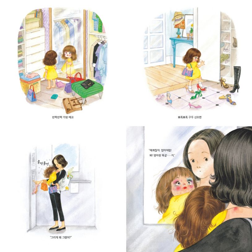 엄마가 너무 좋은 하나는 엄마처럼 화장을 하고, 엄마의 반짝이는 가방을 메고, 엄마의 뾰족 구두를 신으면 엄마와 똑같아 보일 거라고 생각했어요. 하지만…….
