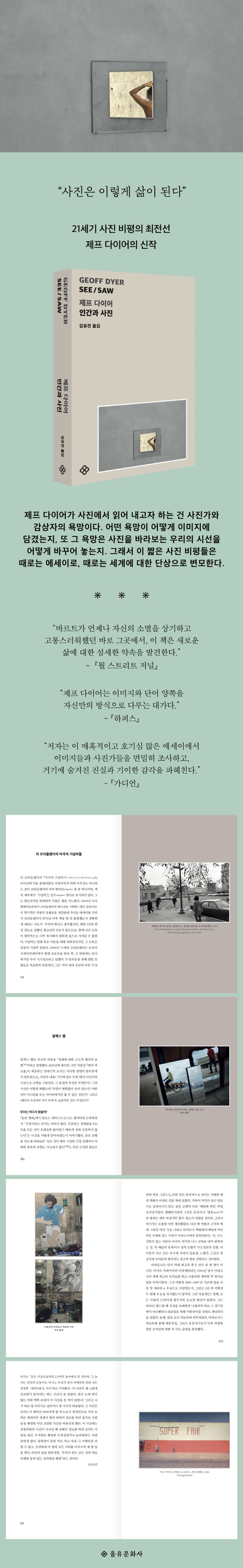 그러나 정작 그의 비평을 책으로 만나기는 힘들었다. 『지속의 순간들』 이후로 그의 작업은 칼럼이나 서문 등 특정 지면을 위해 작성된 글로만 진행되어 왔기 때문이다. 바로 그 글들을 한데 모은 『인간과 사진』은 다이어의 새로운 비평을 만날 수 있는 반가운 책이다.
