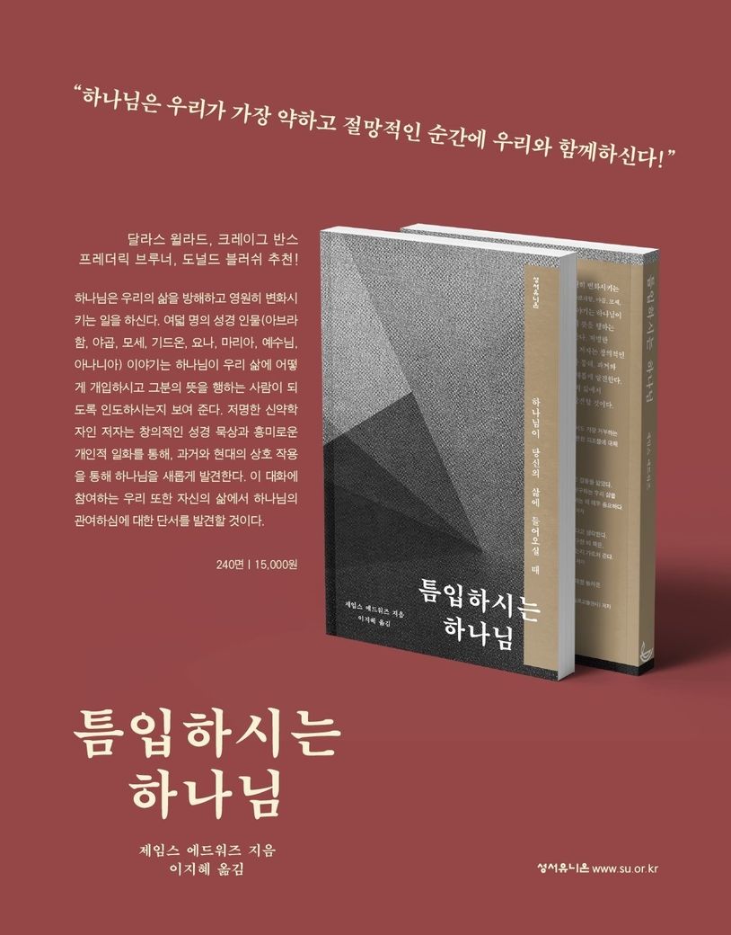 “나는 『틈입하시는 하나님』에 깊이 빠져들었고 감동을 받았다. 이 책은 고전으로서의 가치가 있다. 저자가 탐구하는 우리 삶을 향한 하나님의 ‘틈입’은 경건한 영성을 형성하는 데 매우 중요하다.”