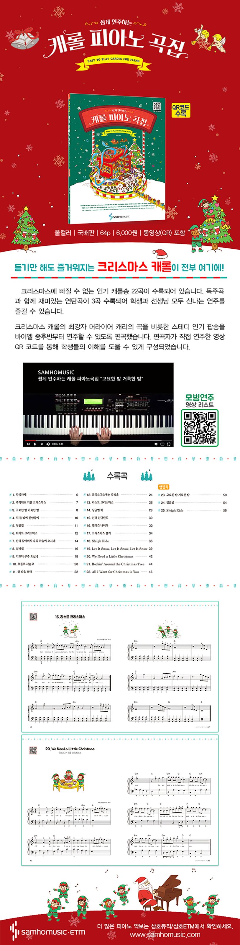 1.장식하세2.축하해요기쁜크리스마스3.고요한밤거룩한밤4.저들밖에한밤중에5.징글벨6.화이트크리스마스7.산타할아버지우리마을에오시네8.실버벨9.기쁘다구주오셨네10.루돌프사슴코11.창밖을보라12.크리스마스에는축복을13.라스트크리스마스14.징글벨락15.윈터원더랜드16.펠리스나비다17.크리스마스폴카18.SleighRide19.LetItSnow,LetitSnow,LetItSnow20.WeNeedaLittleChristmas21.Rockin'AroundtheChristmasTree22.AllIWantforChristmasisYou[연탄곡]23.고요한밤거룩한밤24.징글벨25.SleighRide