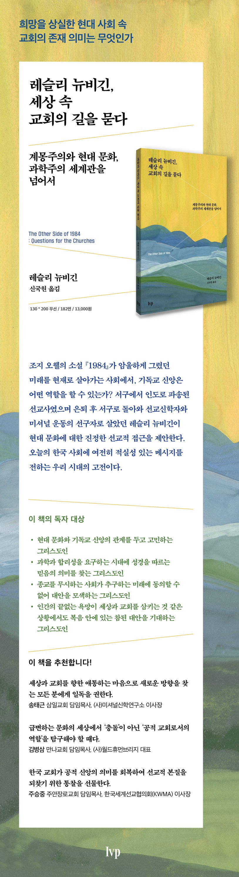 레슬리 뉴비긴, 세상 속 교회의 길을 묻다 (계몽주의와 현대 문화, 과학주의 세계관을 넘어서)
